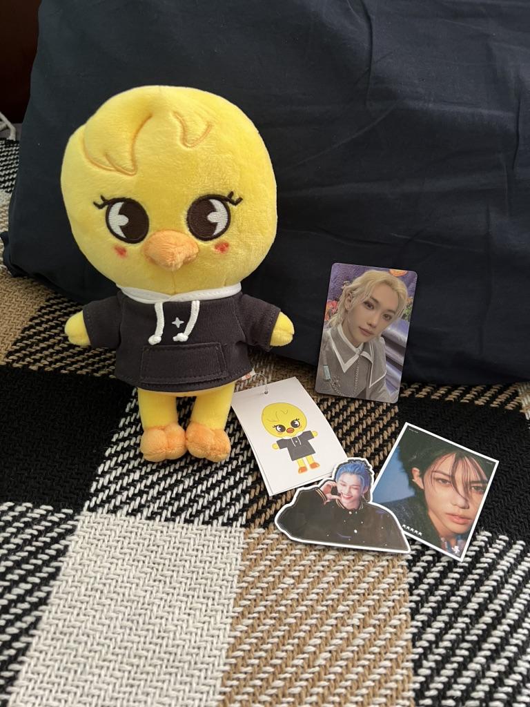 Meravigliosa qualità, skzoo originale e semplicemente indescrivibilmente dolce🐤💗 Era molto ben confezionato ed è arrivato puntualissimo con alcuni regali e una cartolina fotografica originale!!