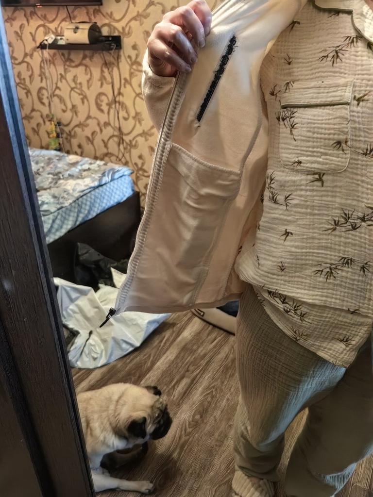 La giacca o il maglione è caldo, il pile è spesso, è un po' largo per la mia taglia 48, ma l'ho ordinato per poter indossare qualcos'altro sotto. Se a qualcuno piace stretto, devi ordinare una taglia più piccola. Lo consiglio per il calore e la comodità.