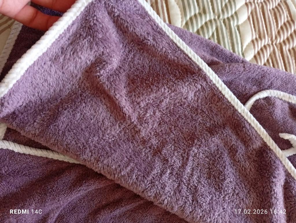 Ho preso per mia figlia come regalo, assorbe l'umidità molto bene, asciugamano e accappatoio - ottimo!