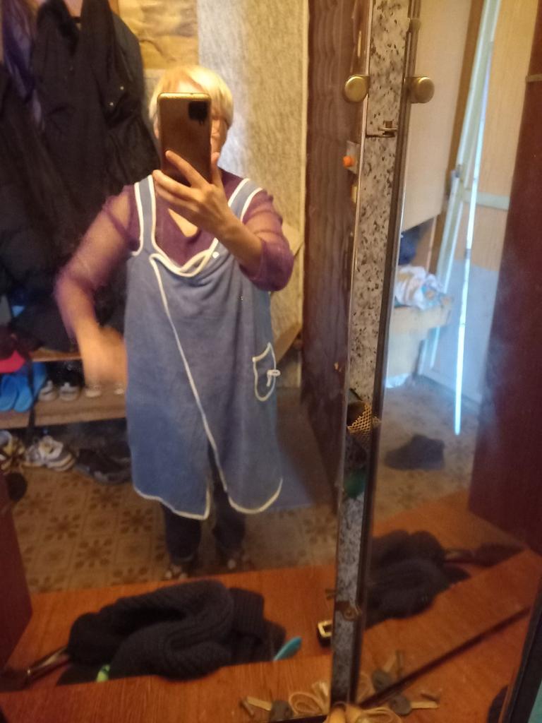 Viene una vestaglia stretta. Alla mia Polllicina si apre a causa del seno e si vede tutto l'intimo. Andrà bene per le magre con il seno piccolo.