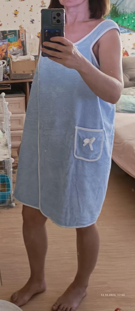 Piacevole asciugamano-accappatoio, comodo da usare dopo la doccia. Lo consiglio.