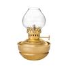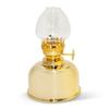 LANTERNA A OLIO IN VETRO: Paralume in vetro a forma di goccia trattenuto in posizione da una base a forma di ciotola in ottone lucido e serbatoio per olio da lampada. La manopola di regolazione dello stoppino permette una facile regolazione delle dimensioni della fiamma.