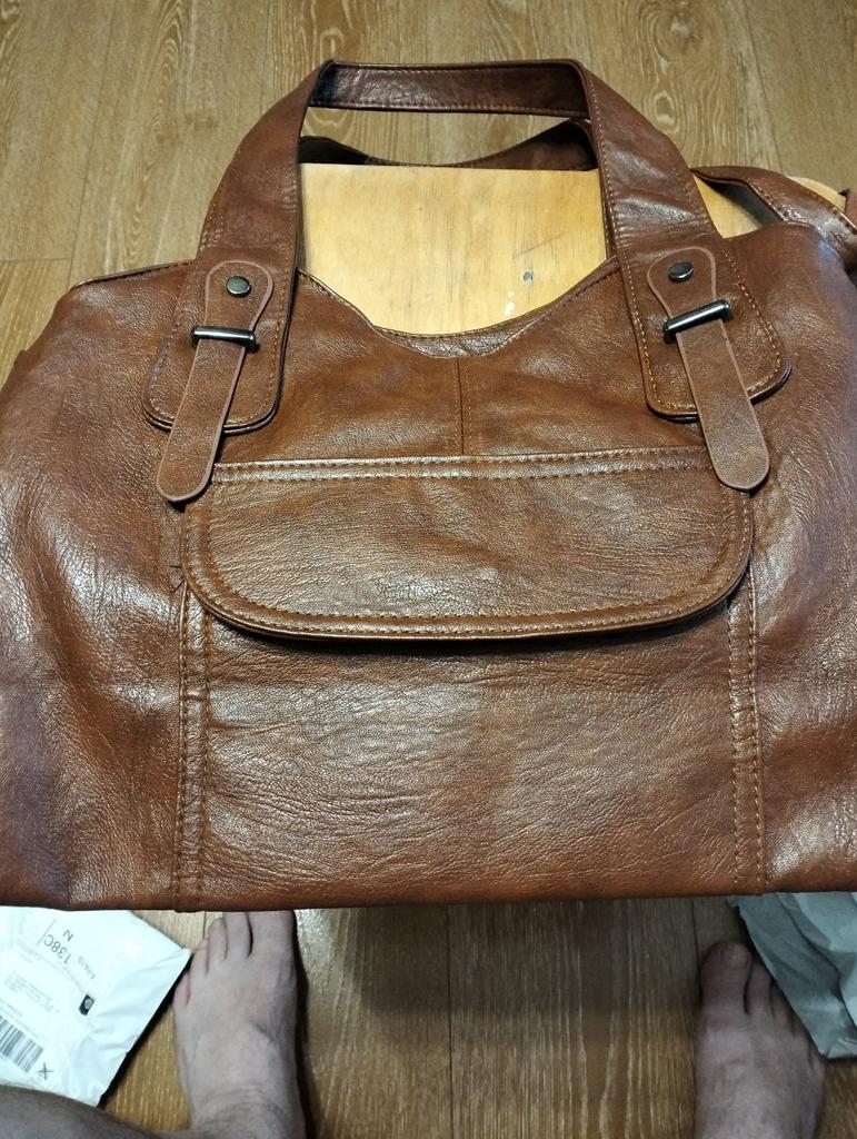 Bella borsa grande, molto morbida ma c'è un leggero odore sgradevole dall'interno, spero che sparisca
