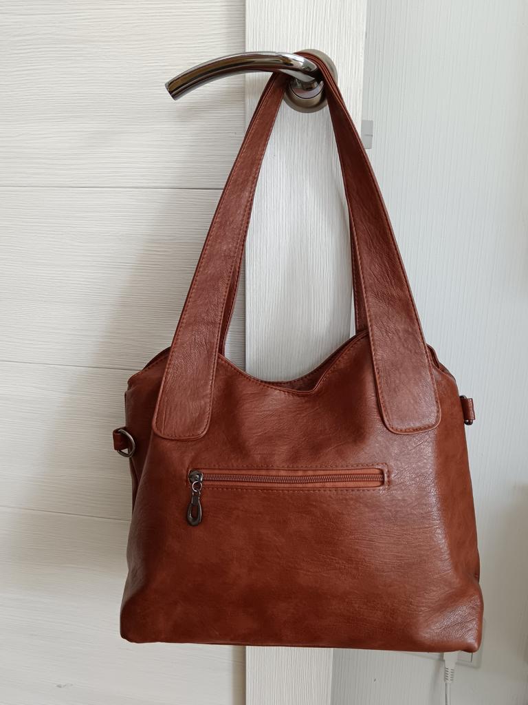 Una borsa fantastica, così morbida, come se fosse di pelle. Buona divisione delle tasche interne per documenti, carte e denaro. Grazie!!