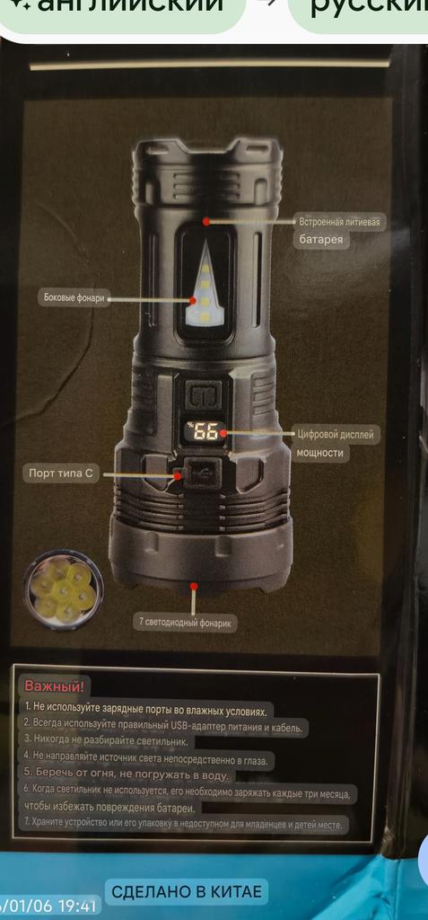 È arrivata la torcia. 🤗Carico al 💯 per cento Illumina bene diverse modalità 4. ❗Leggero - rallegra 🙃Ma è grande, non ci sta in tasca 🤑🤑🤑Prodotto di buona qualità, anche se ho letto recensioni negative. Non l'ho ancora caricato 🎉 Arrivato rapidamente in Ucraina - 14 giorni Aggiunta: Si ricarica con indicatore di percentuale.Inoltre è un po' intelligente, cioè si accende, fa il giro, si spegne, non c'è lo spettacolo con quel lampeggio, commutazione.Molto comodo che il fascio sia al centro👌. Aggiunta: La carica dura normalmente, tutto soddisfa. Il raggio illumina molto lontano, come nella descrizione, e anche più lontano. 🔥🔥🔥L'ho ordinato di nuovo?Sì, come sarà necessario.