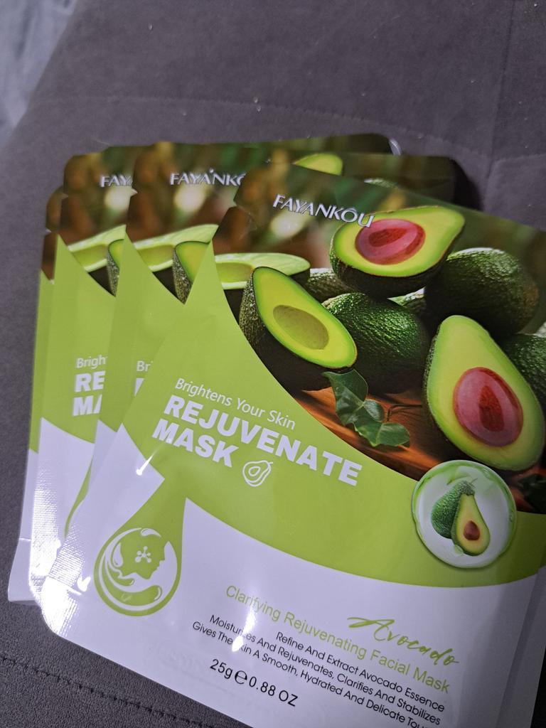 Un set di maschere per il viso😊 La maschera è ben bagnata e gocciola letteralmente quando viene rimossa L'essenza stessa è trasparente. La consistenza è simile ad un gel liquido. Scegli tra avocado (5 pezzi) per idratare e nutrire la pelle. Dopo la maschera la pelle risulta morbida e delicata. Lei sta bene inumidito. Questa maschera non ha causato in me una reazione allergica