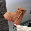 Nuovi Stivali da Donna alla Moda e Versatili Stivali da Donna a Punta Rotonda Lacci Suola Spessa Tacco Quadrato Inverno Stivali Nudi