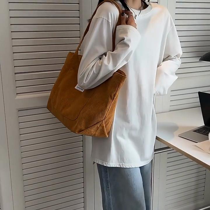 Borsa a tracolla da donna in velluto a coste di grande capacità, borsa a mano in velluto a righe, alla moda, fresca e semplice, borsa tote per studenti, per il tempo libero
