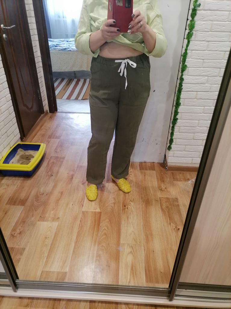 I pantaloni sono leggeri, il tessuto è naturale, stropicciato, per la calda estate. Cucito ordinatamente. La taglia corrisponde alla mia 50-52. Per il prezzo è un'ottima opzione