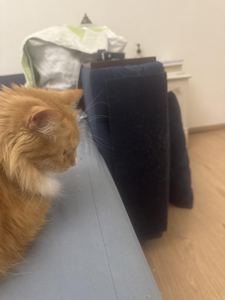 😇 attaccato al divano. Il gatto, secondo me, non ha nemmeno capito cosa è successo, perché nessuno lo ha sgridato per aver distrutto i mobili