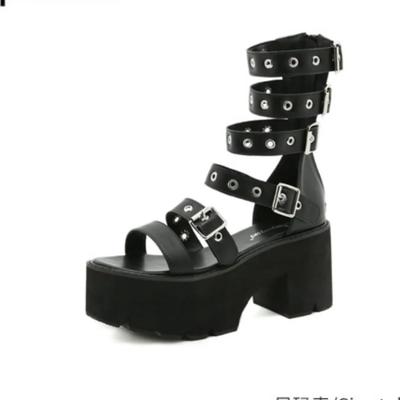 Black Punk Gothic Platform Sandals Open Toe Buckle Strappy Summer Shoes Sexy Rivets Thick Heels Footwear Gladiator Sandals Women