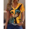 Women's Retro T Shirt Anime Cat Graphic Girl Clothes Summer V-Neck Short Sleeve Tees Female Harajuku Streetwear Oversized Blouse
