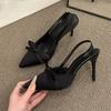 Moda Elegante Fiocco Tacchi Sottili Décolleté Donna Punta Appuntita Cinturino alla Caviglia Scarpe da Sposa da Festa Sandali Estivi Donna Tacchi Alti Scarpe da Sposa