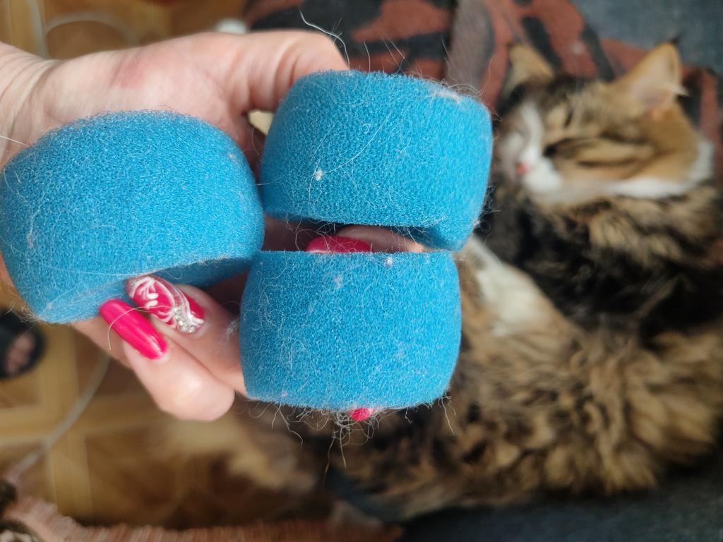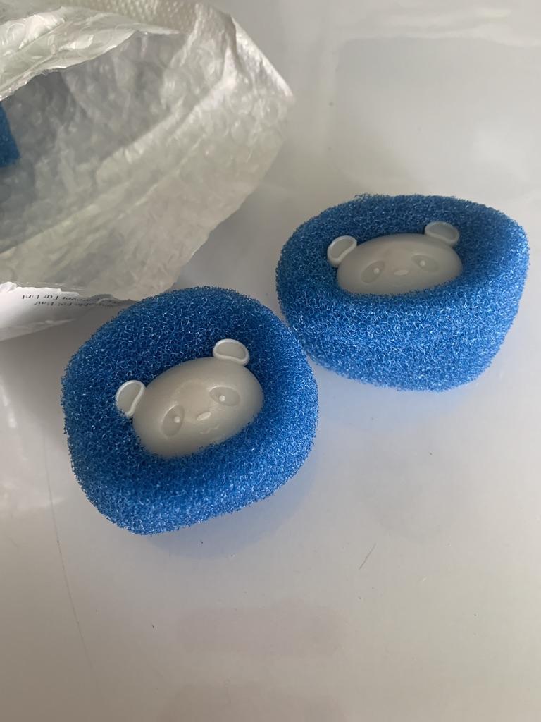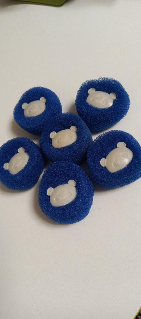 Semplici palline di spugna per raccogliere capelli e peli nella lavatrice.