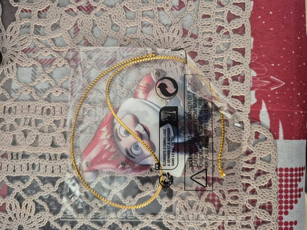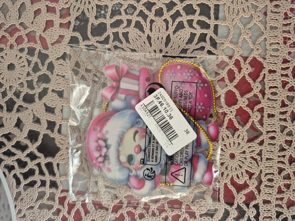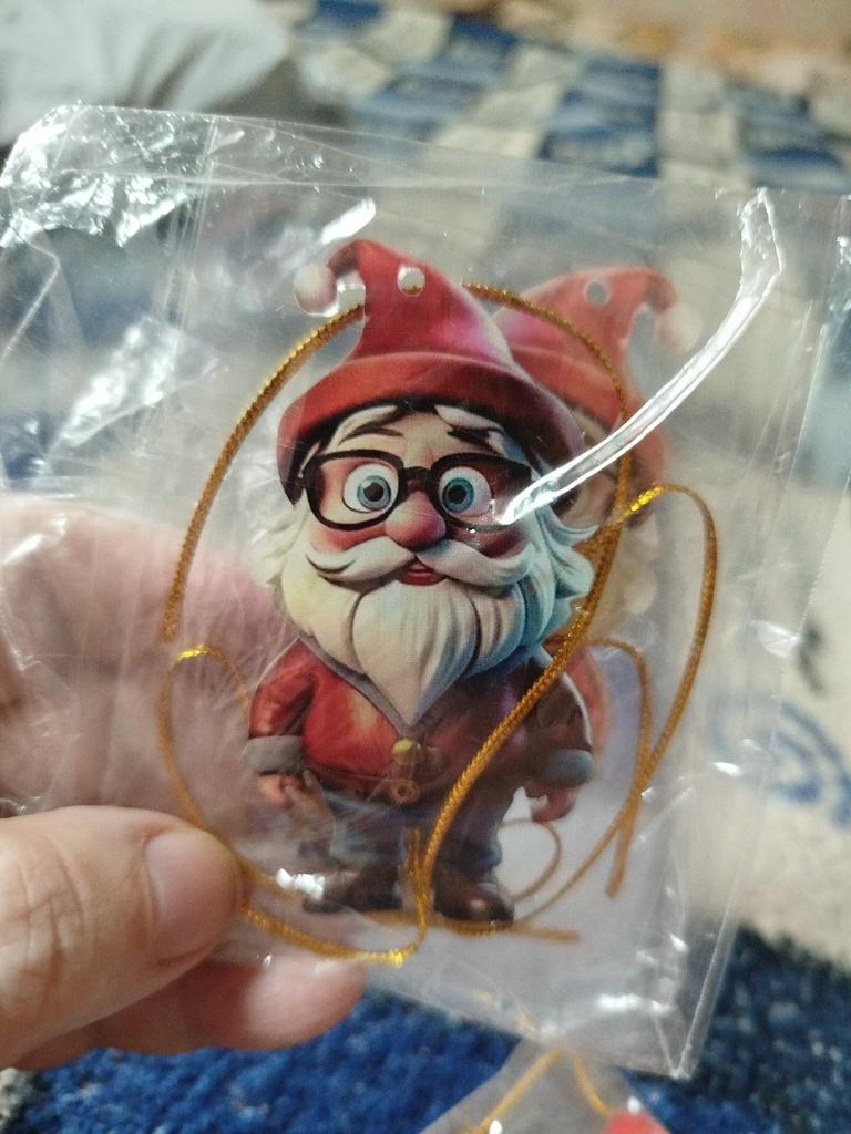Ho comprato per attaccare ai regalini. Una piastrina di legno piatta con un'immagine. Si può appendere all'albero di Natale.