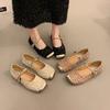Fashion 2024 Women's Costume Shoes Square Toe New Designer Shoes Bling Ballet Flats for Woman Gold Toe