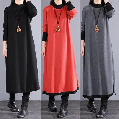 Abito Inverno Lungo Plus Velluto Spesso Maglione Lavorato a Maglia Gonna Sopra il Ginocchio Retro Largo Taglia Grande Fondo Caldo Gonna Lunga