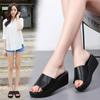 Fashion Versatile Soft Leather Summer Shoes Fashion Mother Outdoor Sandals Women Platform Wedge Heel Fish Mouth Flip Flop Sandals