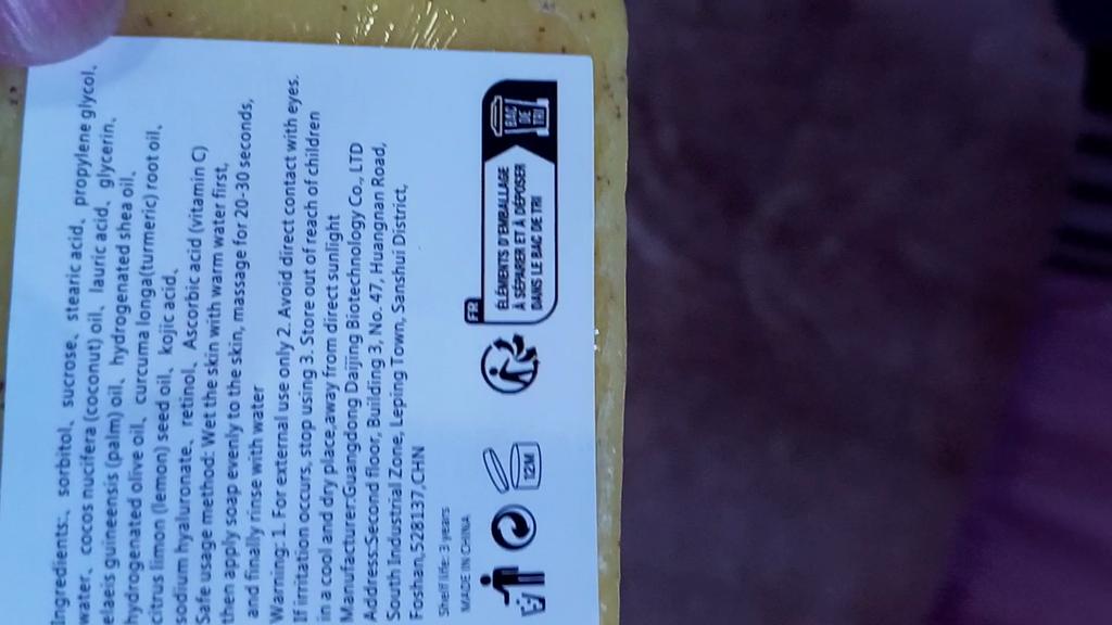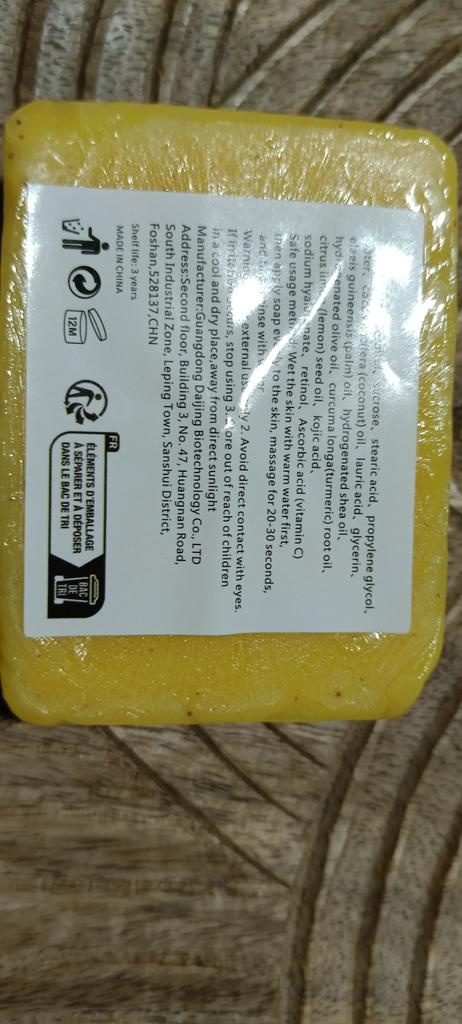 Il sapone dovrebbe Idratare e sbiancare macchie di pigmento. Ha un profumo delizioso di agrumi. L'ho comprato per la prima volta per provare ✅