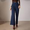 Pantaloni lunghi a gamba larga con tasche, elastici, a vita alta, casual e attivi, da donna