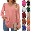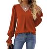 Camicie Eleganti da Donna a Manica Lunga Plissettate Autunno Primavera Tinta Unita Scollo a V Manica con Volant Bluse Top