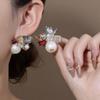 Douyin Popular Small Fresh Fashion Zircon Pearl Flower Basket Ear Buckle Women'S Niche Design Summer Earrings