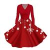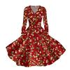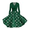 Abito casual da donna con scollo a V, maniche lunghe, stampa natalizia retrò, autunno