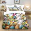 Set Copripiumino con Coniglio Cartone Animato Matrimoniale Queen Uova Colorate Set Biancheria da Letto Copripiumino Floreale in Microfibra per Bambine Bambini Regalo di Pasqua