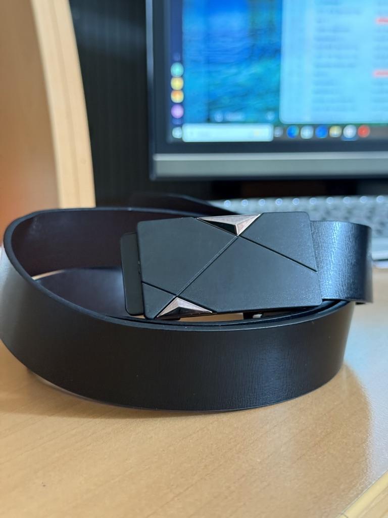 Cintura con una bella fibbia. Sembra resistente a prima vista. Il tempo dirà come sarà indossata.
