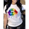 Colorful Lips Girl Printed Simple Trendy Loose Round Neck Pure Cotton T-Shirts Women’s