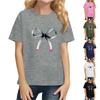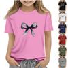 Women's Round Neck Short Sleeved Bow Printed Top