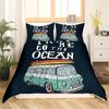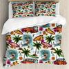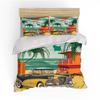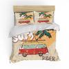 Surf Duvet Cover Hippie Classic Old Bus Surfboard Freedom Holiday Exotic Life Sketchy Art Yellow Orange Room Decor for Women Men