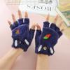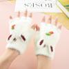 Girls' Cartoon Carrot Flip-Open Plush Gloves - Half-Finger, Thick, Warm for Autumn/Winter