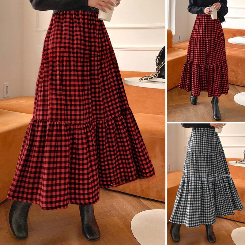Gonna Lunga a Quadri Primavera e Autunno da Donna a Vita Alta con Ampia Gonna a Ombrello A-line Midi Gonna a Quadri Retrò