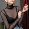High Neck Mesh Base Shirt Women's Inner Outfit Stylish Gauze Shirt Plus Size Black Pile Collar Lace Shirt Top