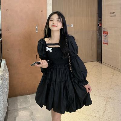 Abito da donna giapponese Harajuku nero bianco colletto quadrato aderente abito da ballo con fiocco Y2K mini abito da festa gotico Kawaii carino