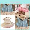 Realizzato in una miscela di cotone e spandex confortevole e traspirante, offre una vestibilità elastica e rilassata, rendendolo ideale per i più piccoli attivi. L'incantevole colletto rifinito in pizzo aggiunge un tocco di eleganza, mentre la leggera gonna in tulle accentua il fascino fiabesco.