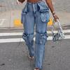 GMXIA Jeans e Pantaloni Patchwork Casual alla Moda Multitasche Organ