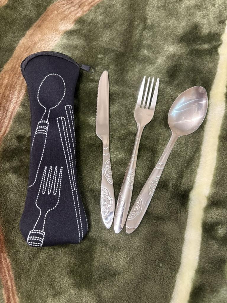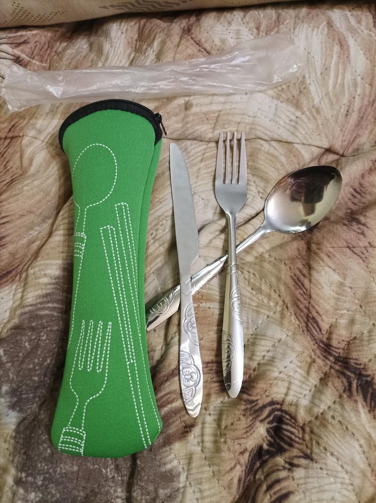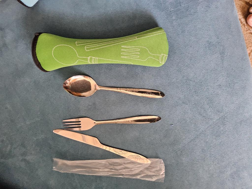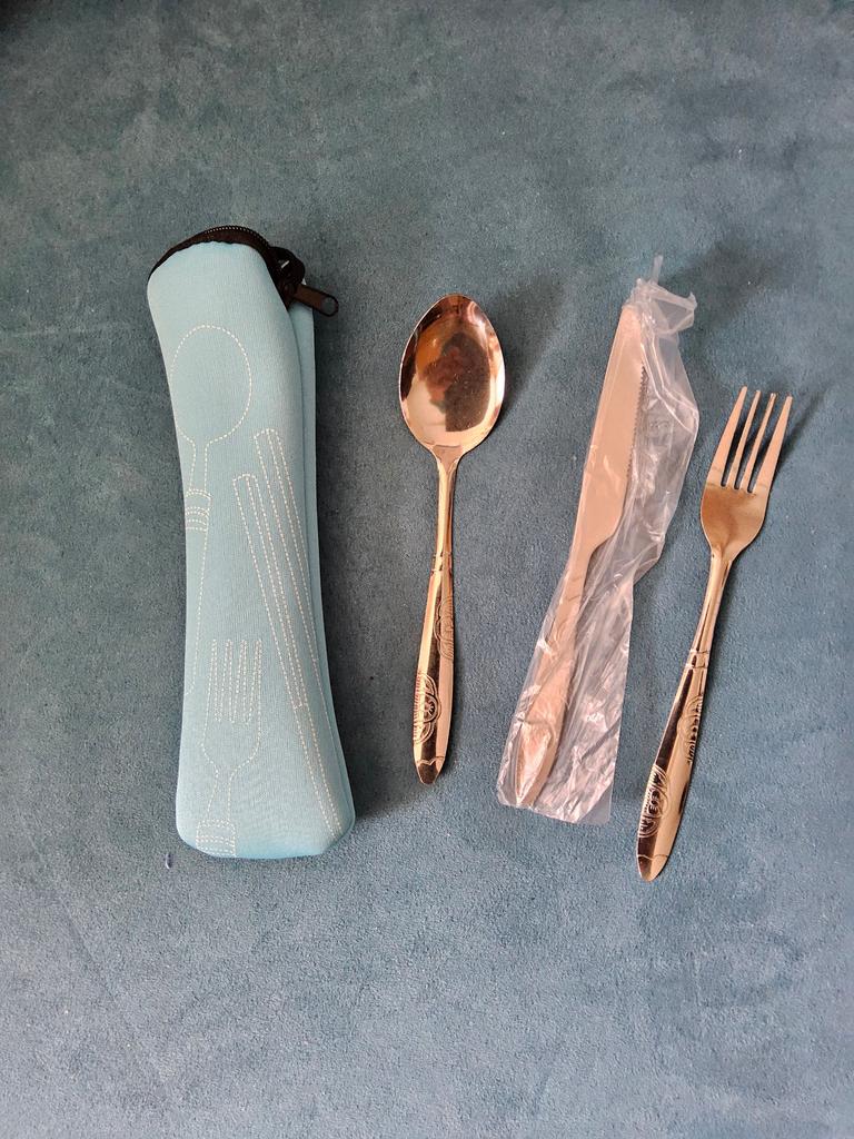 Come set da viaggio per posate in acciaio inossidabile (Forchetta, cucchiaio, coltello da bistecca) che è portatile per viaggiare, durevole, leggero ed ecologico. Leggero, di dimensioni da dessert, sarà utile, grazie 😉. Lo consiglio!!! 🌷🤙🌷🤙🌷🤙