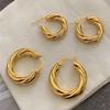 Fashion Versatile Stainless Steel Ear Buckle Women'S Simple Hollow Threaded Circle Titanium Steel Earrings Medieval Earrings