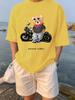 Motorcycling Bear Funny Cute Top Camisetas Black Ladies Tshirts Aesthetics Graphic White Short Sleeve 100%Cotton Man's T-shirt