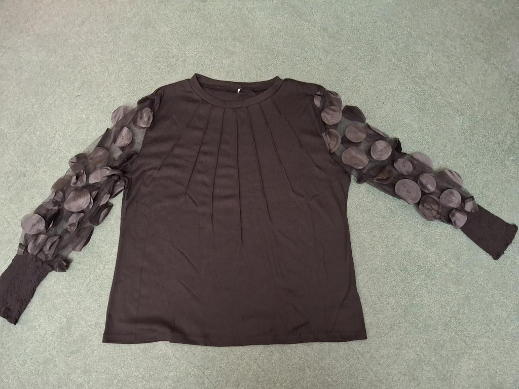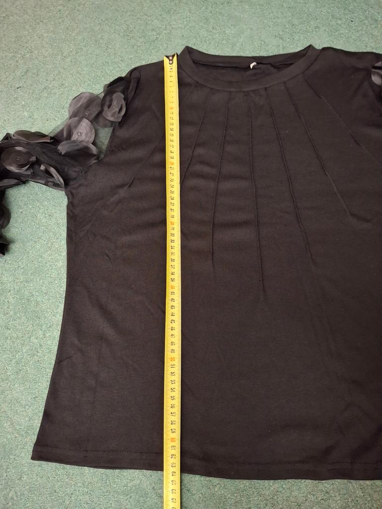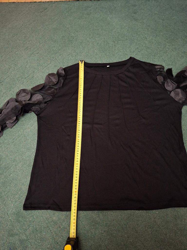 La camicetta ha una vestibilità strana. È larga al petto e alle spalle, mentre la lunghezza sia della camicetta che delle maniche è inferiore a quella dichiarata. E la manica è molto stretta. Non sta affatto come in foto.