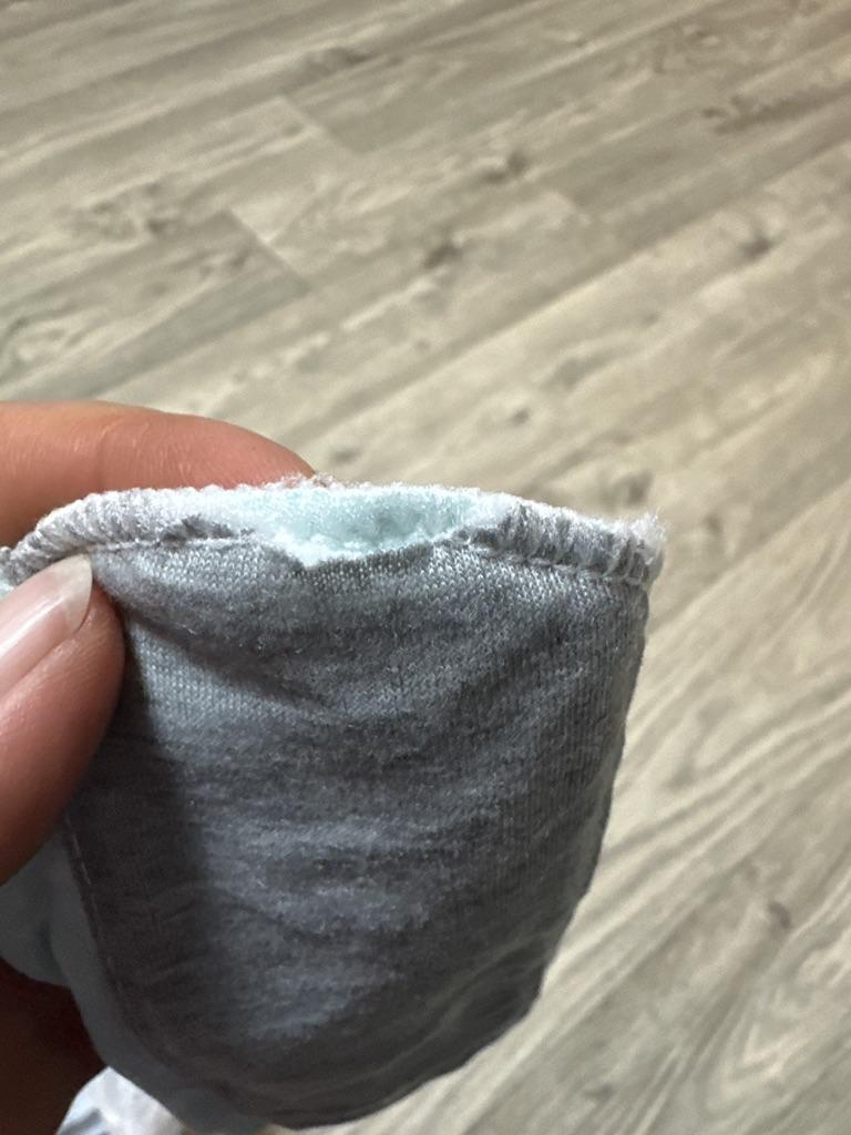 Troppo sottile per me. Ho fatto un taglio sull'etichetta interna e inserisco gli assorbenti quotidiani. Ora gli assorbenti non possono staccarsi accidentalmente o spostarsi lateralmente.