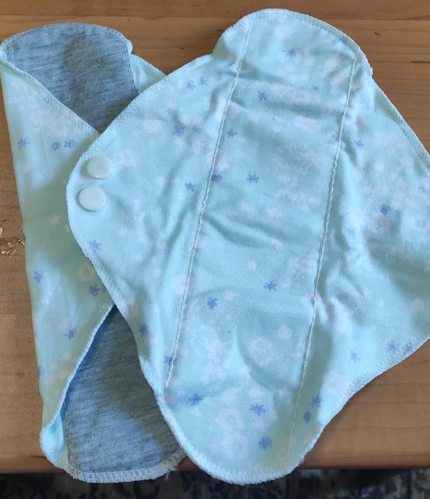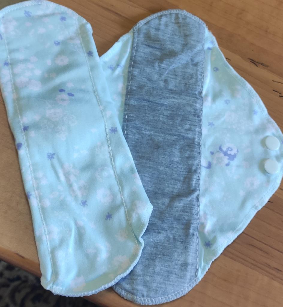 Assorbenti di stoffa, si fissano sotto le mutandine con bottoni a pressione, comodo.
