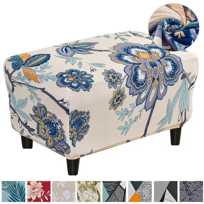 Pastoral Style Ottoman Stool Cover Stretch Spandex Footstool Slipcovers All Inclusive Sofa Stool Covers for Living Room Home