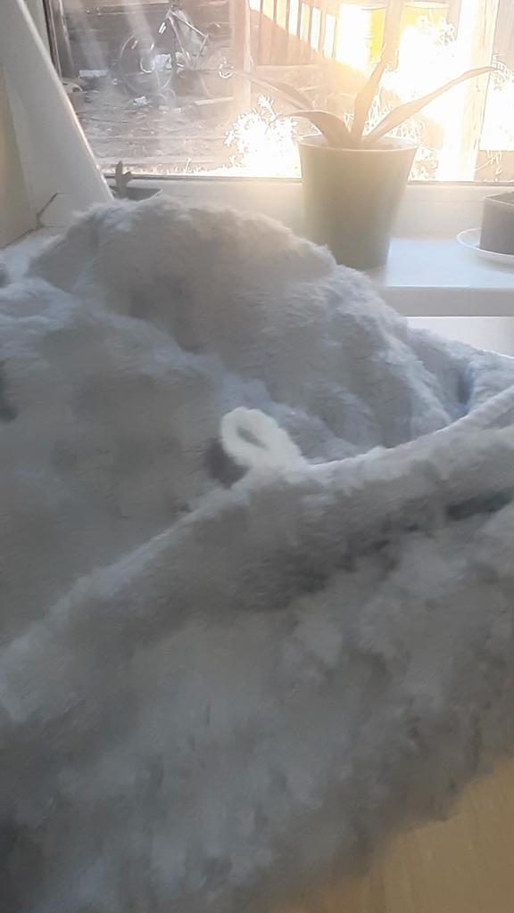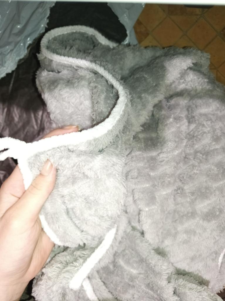 Morbido, leggero, sottile e c'è l'uncino. Piacevole al tatto. Cuciture normali, il pelo per ora non cade. Grazie)