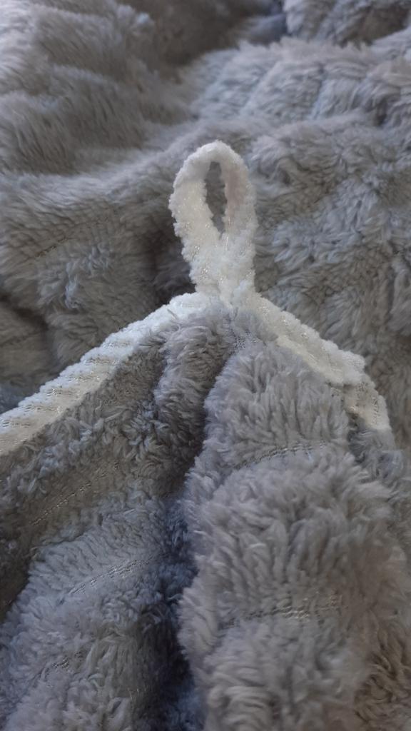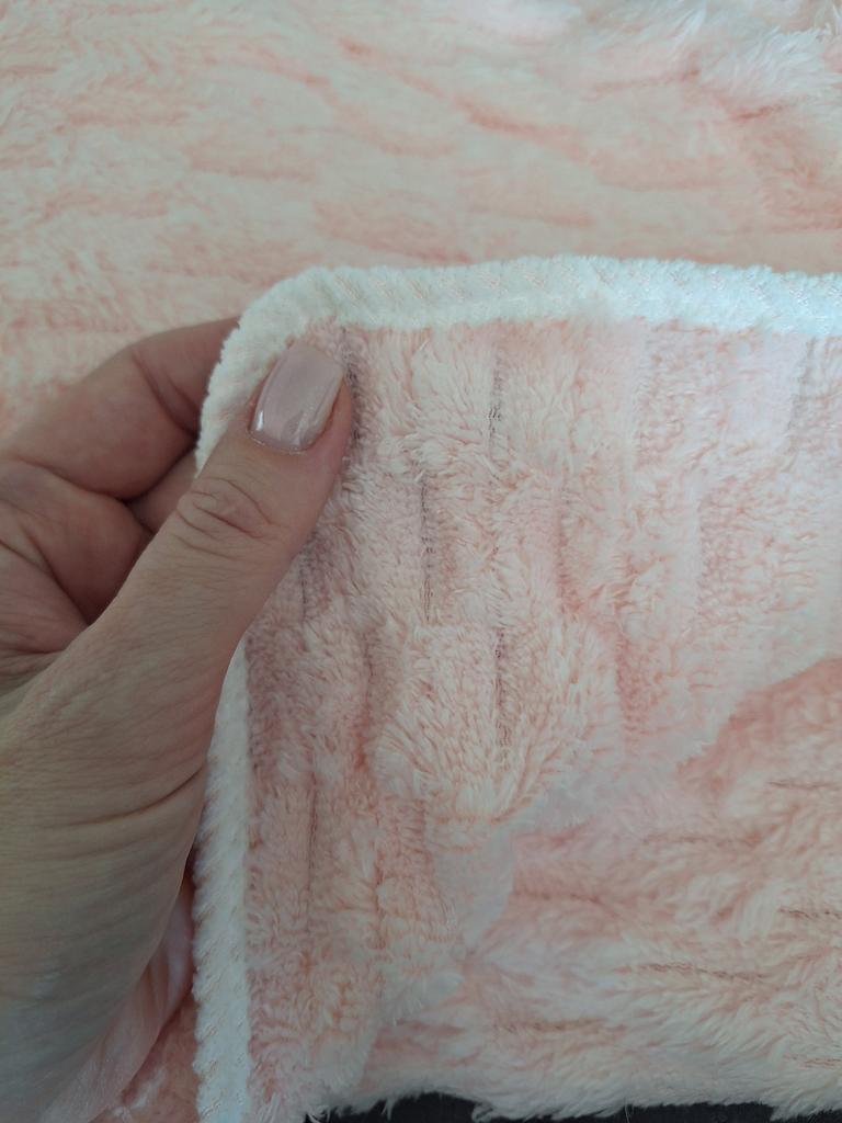 L'asciugamano è morbido e soffice, delicato al tatto. La cucitura è buona, c'è un occhiello per appenderlo, i fili non sporgono da nessuna parte. Non so ancora come assorbirà l'umidità e quanto velocemente si asciugherà, ma all'aspetto mi piace, anche per 4 grivnie.