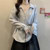 Shirt Women's Spring and Autumn New Trendy V-neck Temperament Shirt Design Sense Niche French Retro Top