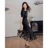 Abito da donna a coda di pesce con paillettes, scollo a V e maniche lunghe (Collezione autunno/inverno 2024)