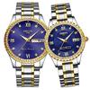 Orologio da coppia impermeabile di lusso, orologio da polso, design alla moda, analogico al quarzo, orologio casual in acciaio inossidabile con quadrante con finestra giorno-data, orologio rotondo resistente all'acqua fino a 30 m. Impermeabile per il lavaggio a mano, l'acqua piovana e l'uso quotidiano, non adatto per attività subacquee. Avviso: Non premere alcun pulsante sott'acqua.